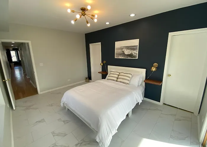 This Chicago villa is 0.6 miles from the baseball stadium "Wrigley Field", while the half - mile - long Navy Pier is located 4.3 miles away. The holiday home is also within reach of the newly developed Gallagher Way Plaza. Modern Wrigley Oasis With Parking! Villa is around 15 minutes' drive from the skyscraper 360 Chicago Observation Deck.